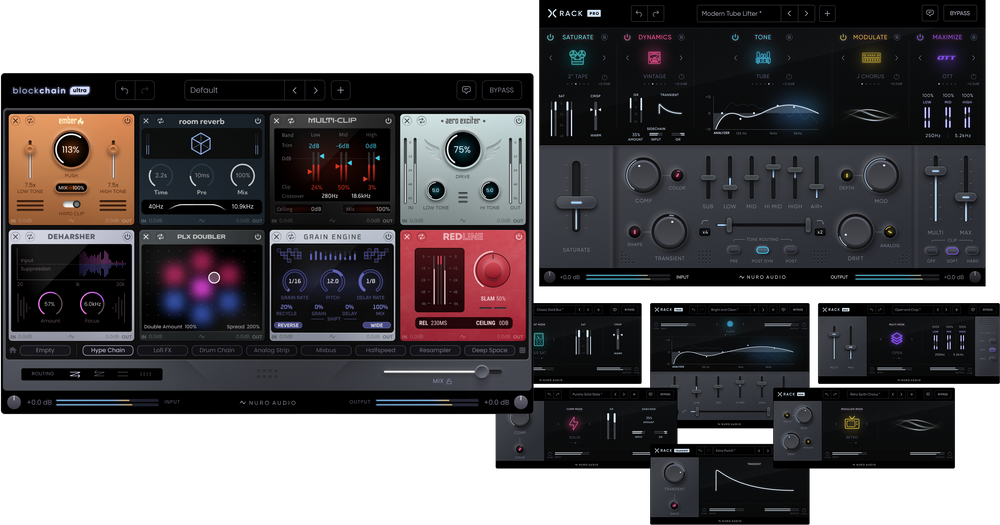 Includes: Xrack Pro, Xrack Sat, Xrack Comp, Xrack Transient, Xrack Tone, Xrack Mod, Xrack Max, Blockchain Ultra (87 Modules)