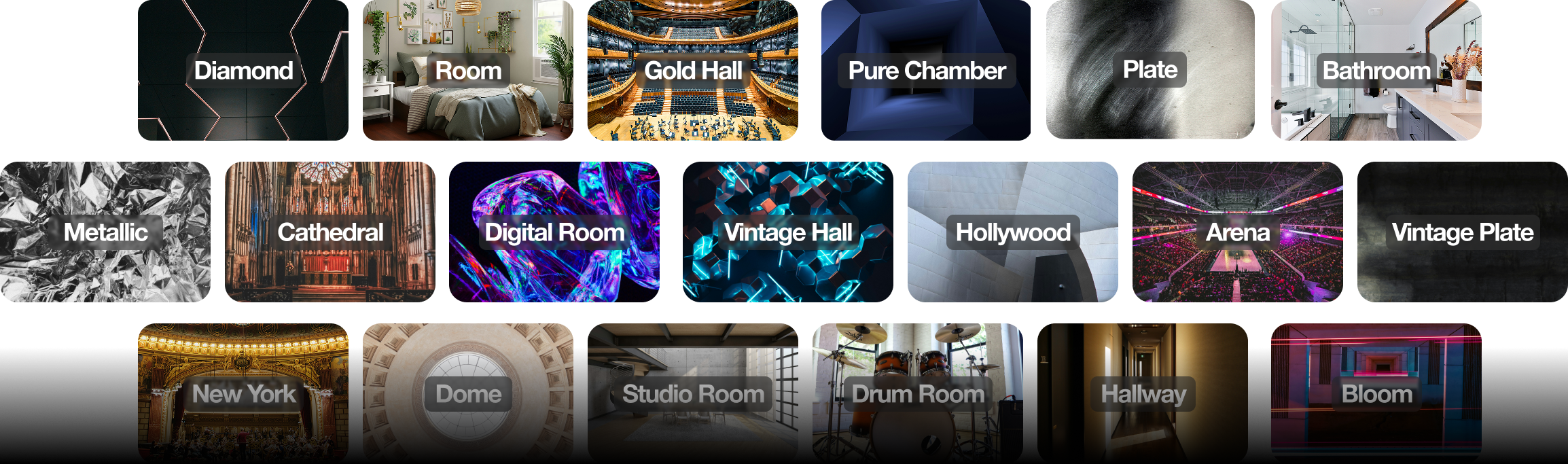 Choose from beautiful creative spaces that blur the line between reverb & delay in entirely new ways.