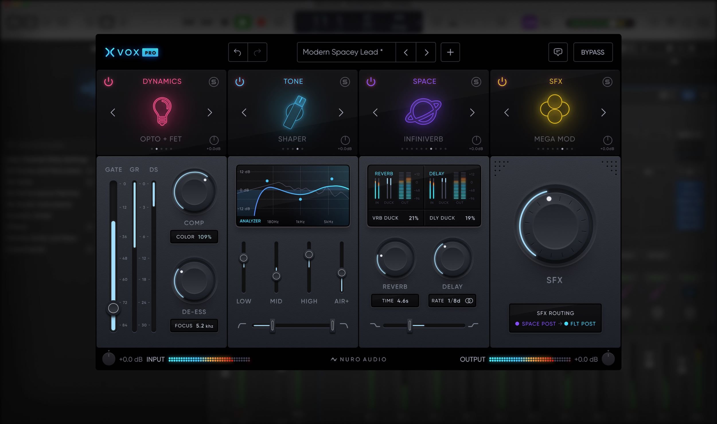 With all-new SFX modes like Tape Saturation, Mega Mod creative modulator, and Unison - there are tons of ways to make your vocals stand out.