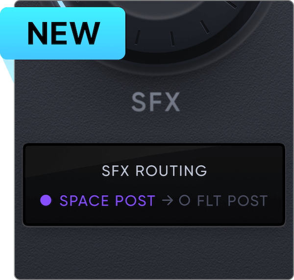Experiment with two new custom routing modes for even more creative possibilities. SPACE POST places the SPACE module after the SFX module, letting you choose to modulate your Spaces. Or, use FLT POST to place both the HPF and LPF at the end of your chain for global filtered effects.